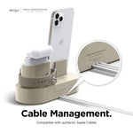 - Precise cutouts help protect your cables and keeps your are uncluttered. Due to the exact design, only original apple cables are compatible with the charging station; 3rd party cables have not been tested with this product and may not work.