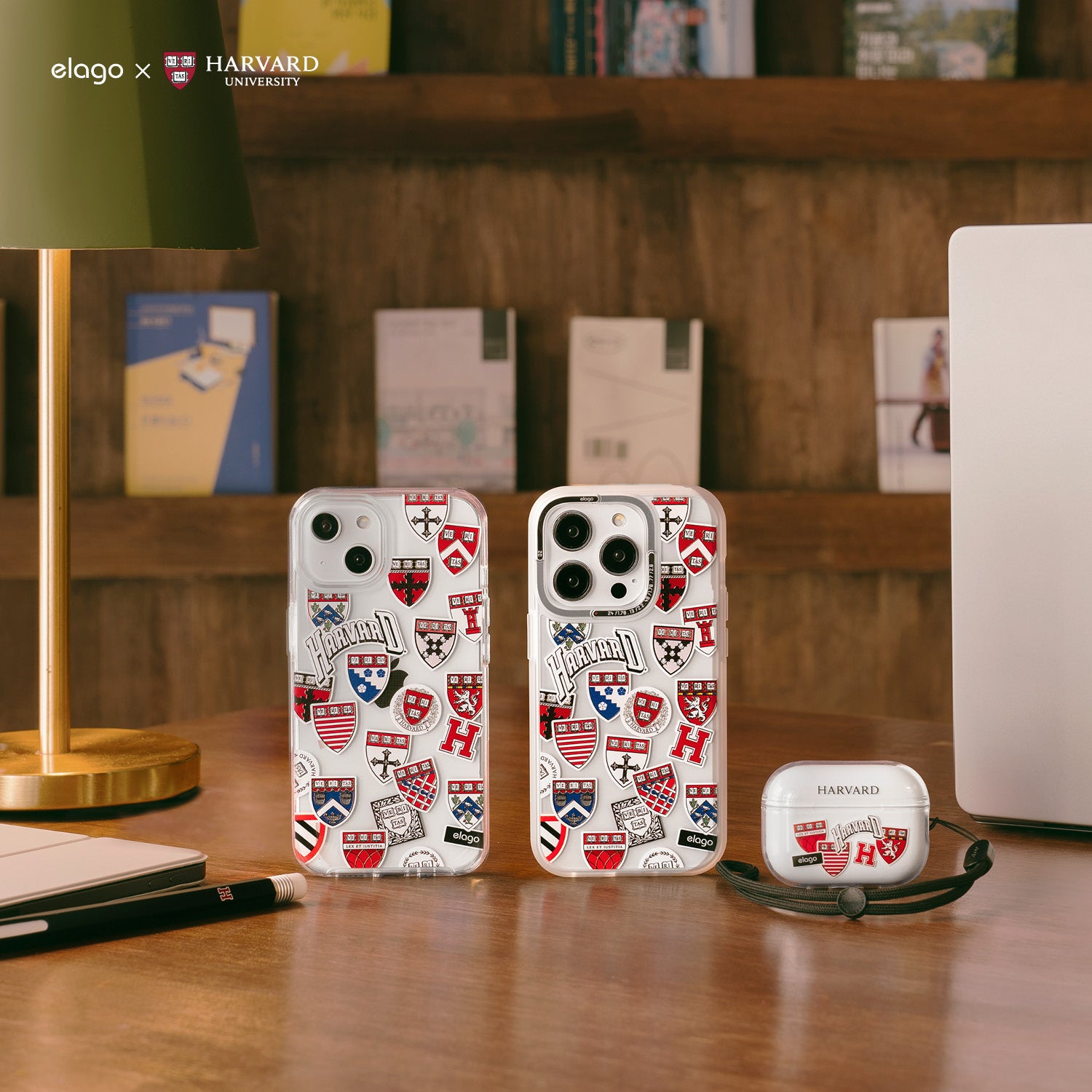 - elago is working with Harvard University to create custom collaboration products for Harvard alumni, current students, or fans of the school. Show your support for Harvard and elago by buying authentic products licensed by Harvard Unviersity.