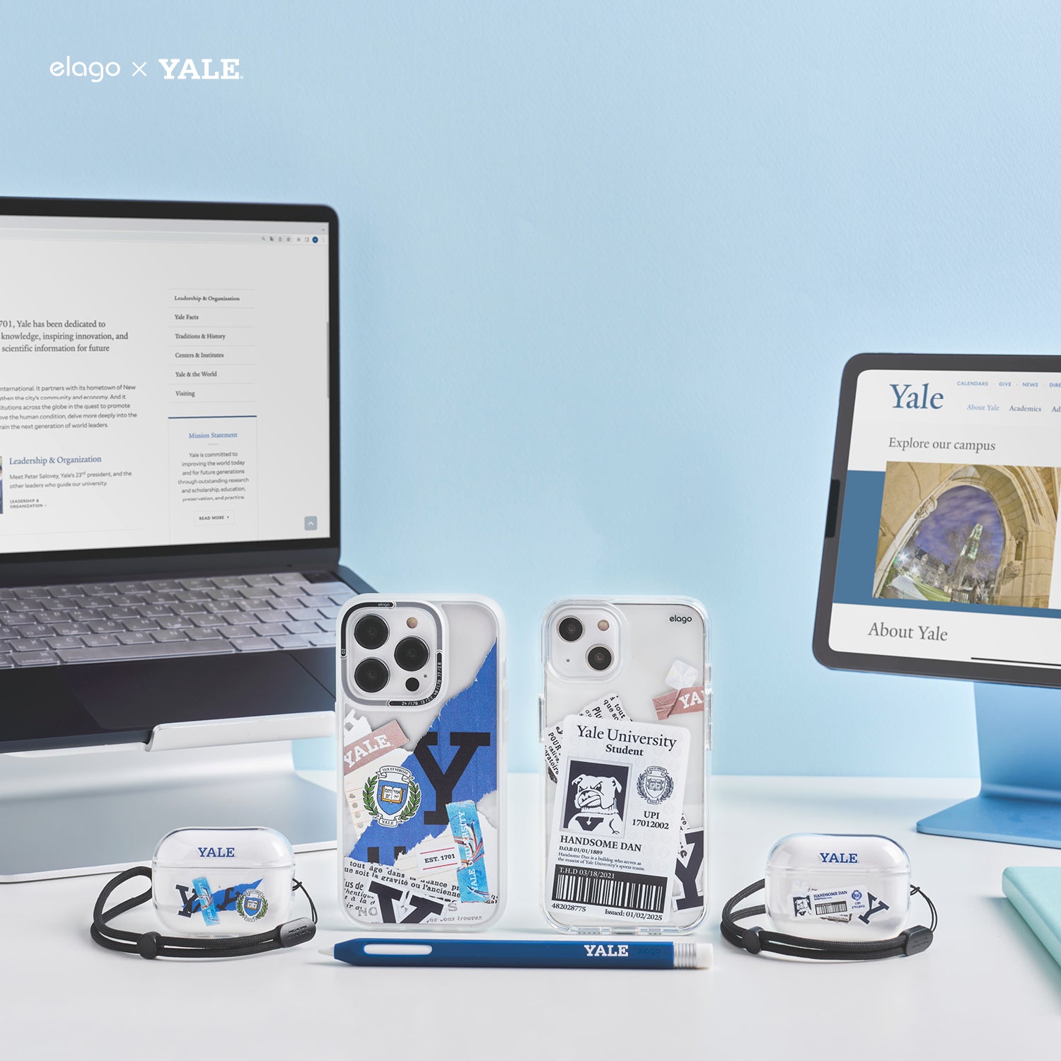 - elago is working with Yale University to create custom collaboration products for Yale alumni, current students, or fans of the school. Show your support for Yale and elago by buying authentic products licensed by Yale Unviersity.