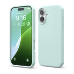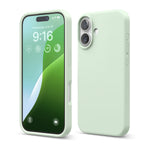 Light green premium silicone case for iPhone 16. One of the best cases for iPhone 16, combining stylish design with durable protection. Perfect for those seeking high-quality iPhone 16 Apple cases or a sleek iPhone 16 case cover.