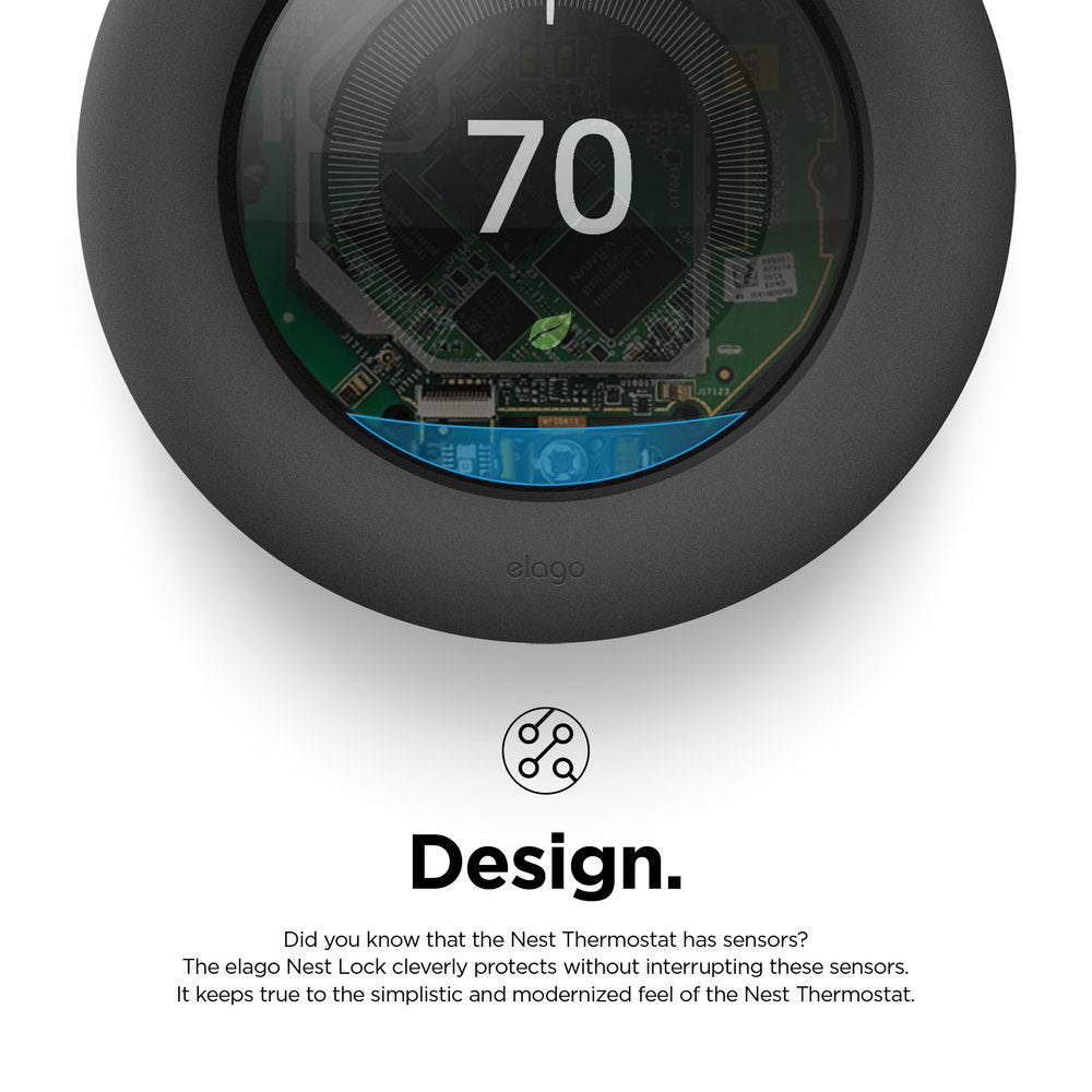 - DESIGN: Did you know that the Nest Thermostat has sensors? The elago Nest Lock cleverly protects without interrupting these sensors. It keeps true to the simplistic and modernized feel of the Nest Thermostat.
