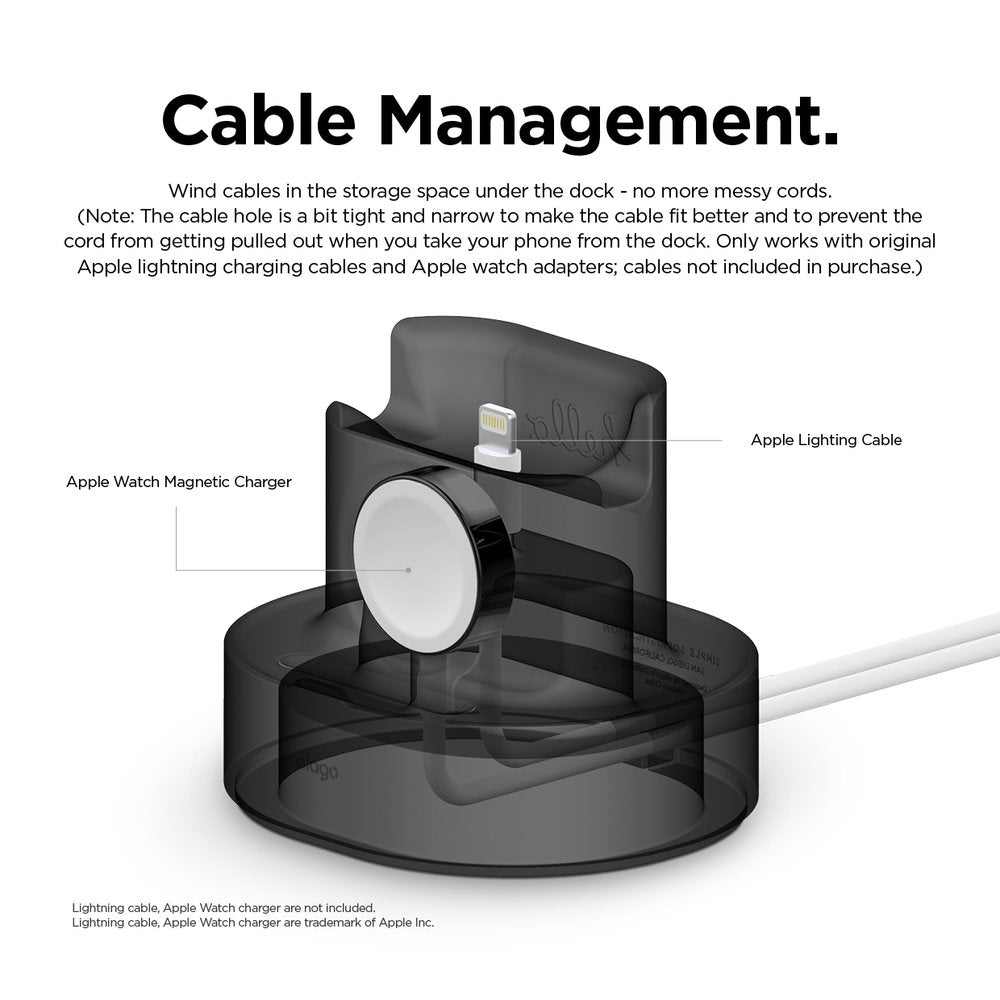 - Wind cables in the storage space under the dock - no more messy cords. (Note: The cable hole is a bit tight and narrow to make the cable fit better and to prevent cord from getting pulled out when you take your phone from the dock. Only works with original apple lightning charging cables and apple watch adapters; cables not included in purchase.)