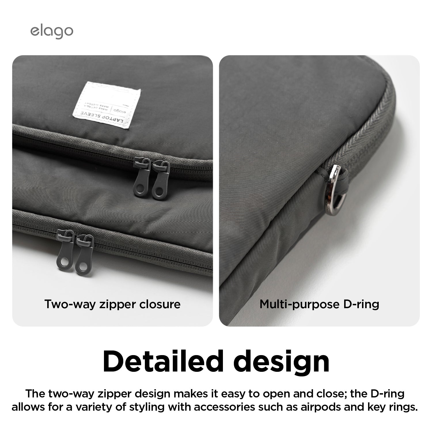 - Convenient pouch on the sleeve allows you to store and travel around with accessories for you laptop - mouse, adapters, and any other accessories you need can be carried with you with ease.